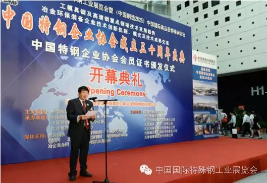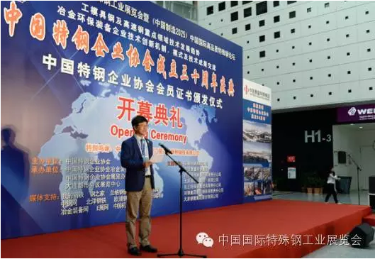 中國國際特殊鋼工業(yè)展覽會開幕式由九屆六次執(zhí)行會長寶鋼特鋼總經(jīng)理龐遠(yuǎn)林主持,中國特鋼企業(yè)協(xié)會會長中信泰富特鋼集團(tuán)董事長俞亞鵬致開幕詞,中國鋼鐵工業(yè)協(xié)會副會長王利群和中國鋼研科技集團(tuán)副總經(jīng)理田志凌致賀詞。參加開幕式剪彩的領(lǐng)導(dǎo)及嘉賓有:寶鋼特鋼有限公司總經(jīng)理龐遠(yuǎn)林、中信泰富特鋼集團(tuán)董事長俞亞鵬、西寧特殊鋼集團(tuán)有限責(zé)任公司董事長、黨委書記楊忠、中國鋼鐵工業(yè)協(xié)會副會長王利群、中國鋼鐵工業(yè)協(xié)會副會長、冶金規(guī)劃研究院院長李新創(chuàng)、中國鋼研科技集團(tuán)有限公司副總經(jīng)理田志凌、中信泰富特鋼集團(tuán)總裁錢剛、東北特殊鋼集團(tuán)有限責(zé)任公司總工程師董學(xué)東、太原鋼鐵(集團(tuán))有限公司副總柴志勇、舞陽鋼鐵有限責(zé)任公司董事長鄧建軍、天津鋼管集團(tuán)有限公司副總工程師楊在安、中國特鋼企業(yè)協(xié)會不銹鋼分會常務(wù)副會長劉復(fù)興、河鋼集團(tuán)石鋼公司總工程師齊建軍等。開幕式后全體參觀了展覽會。